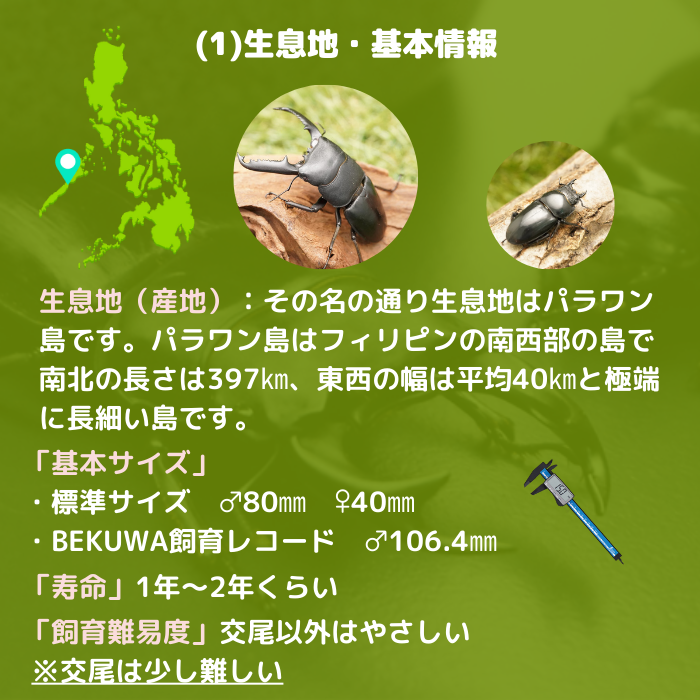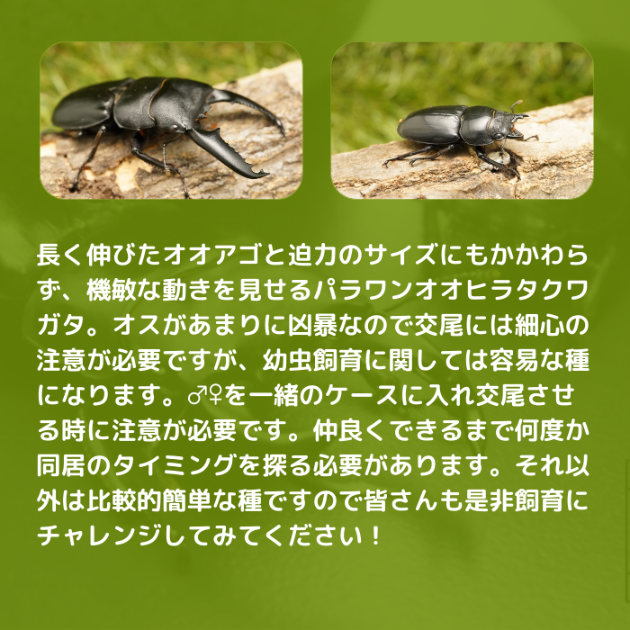 パラワンオオヒラタクワガタの基本情報(インスタグラム)