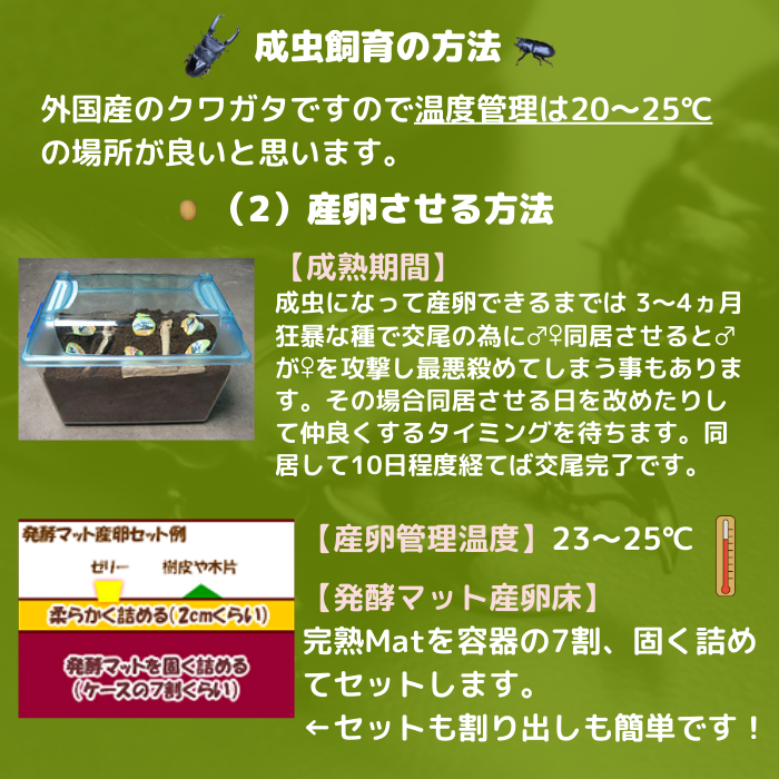※生体に死亡・衰弱・欠損などが見られたら到着後3日以内にご連絡ください。品交換か返金にて補償いたします。※生体は破棄せずご返送の時まで保管をお願いいたします。※お客様都合による受取遅延があった場合は補償対象外となります。