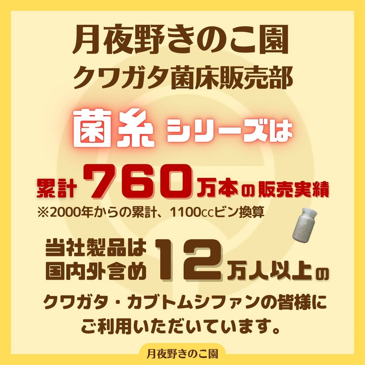 菌糸ビンの上部に菌糸固がある場合がございますがご使用には問題ございませんので予めご了承くださいますようお願いいたします。