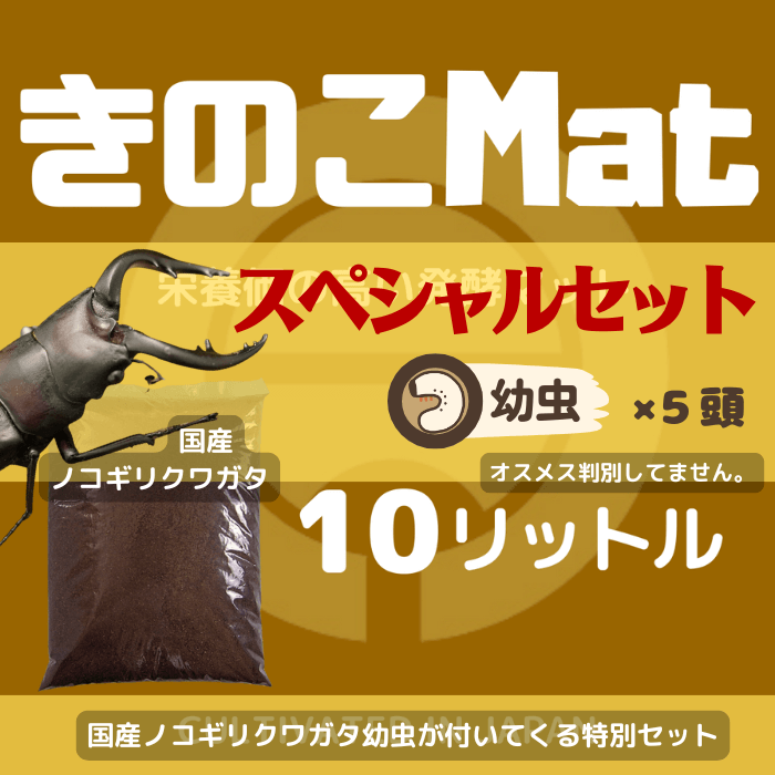 【スペシャルセット】きのこMat-10L(昆虫マット・発酵マット)+国産ノコギリクワガタ幼虫5頭付き、きのこMat10L(虫)